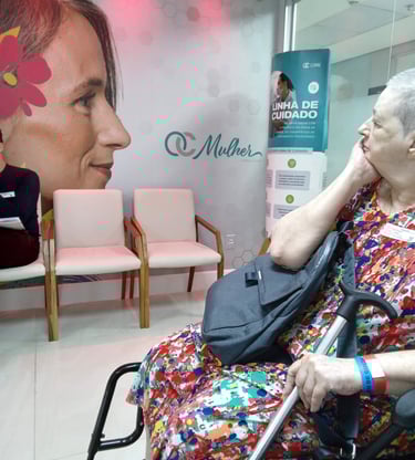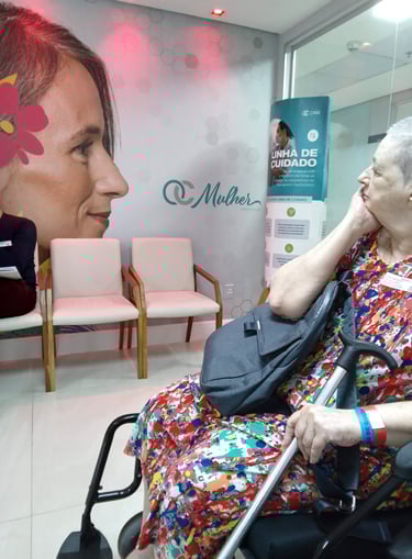 “Ter a companhia da Valéria, que veio me buscar, ficou comigo o tempo todo… é uma pessoa dinâmica, alegre… foi altamente agradável, não foi um momento pesado, a quimioterapia...”
